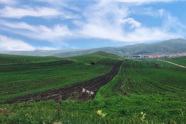小路破开翠绿的草皮蜿蜒而上,七月初的坝上草原已然绿得不像话,草原的天气阴晴不定,抬头看风吹云走,低头现云影略过草原,阳光不烈,时光正好。