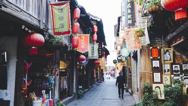 古街是前店后宅,下店上宅,集传统行业于一街市,保存丰富的历史建筑,保留着较为完整的传统格局和独特的历史风貌,基本维持其原有的社会功能和经济文化活动。但是走进这样的街道,都是接地气儿的景象,完全不是商业街巷的那般吵闹喧哗,它其实是一条传统的手工百业街,豆腐店、打铁铺、剃头店、雕刻店、裁缝店、画像店等等,豆腐坊、姜糖店,偶尔遇见一两家咖啡奶茶店。