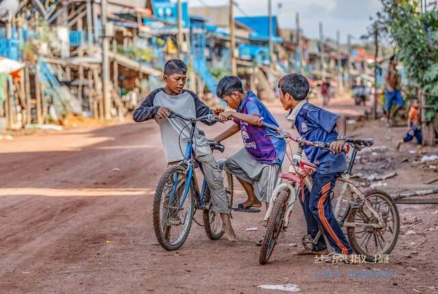 我们到达水上浮村的时节算是枯水期,村落里大家还是可以在道路上进行各种交通,但到了丰水季 的时候这些道路边的二层楼的建筑就只剩下上面那层还露出在水面,大家的交通也都靠船了。
