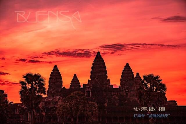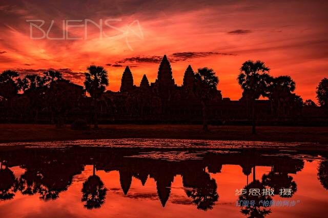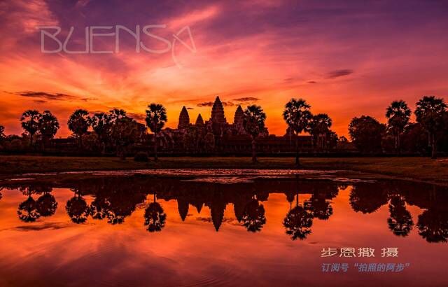 匆匆忙忙的赶到小吴哥那最著名的看日出的水塘边时,天际已经变的有些明亮了。虽然早上四点就出发了,但加上了先去买票的时间,到达时却是稍晚了些。水塘边已经层层叠叠的围满了人,一个个抬头望天,期待的模样。靠着身体不算粗苯,慢慢,慢慢居然也蹭到了人群的最前面,和大家一样,抬头望天。