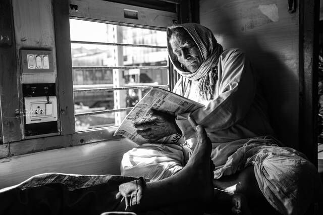 在这段旅途中,印象深刻的地方很多,忍不住叹一句:印度真的是一个很奇怪的国家。许多不可思议的事情都发生在这里,感觉人们充满了欢乐,也暴露了无知与落后。令我至今记忆犹新的还是在印度坐火车到经历,一个中国女孩和一火车印度人挤在一起,我既感到紧张也感到新奇。拿起相机忍不住抓怕人们刹那间的一举一动。图为,一位印度老人借着阳光正在看着报纸,全是印地语。