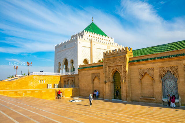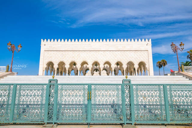 穆罕默德五世墓,始建于1962年,1971年竣工,历时9年完成,被认为是阿拉维王朝现代最杰出的建筑。墓室内两侧分列为哈桑二世及其弟阿卜杜拉亲王墓,并建有陈列馆,藏有阿拉维王朝历代君主画像和五世遗物及其统治时期的历史资料与文献。