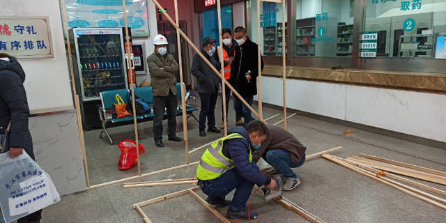 武汉建工集团接到的任务是为7所医院中的4所——武汉市四医院、五医院、九医院和武昌医院搭设发热门诊应急隔离隔断,用于就近收治发热病人。
