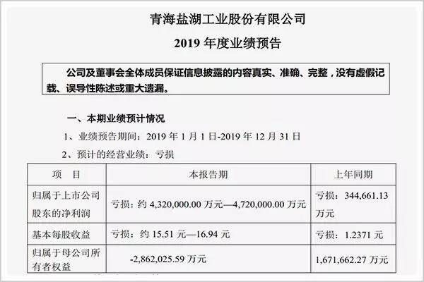 一时间,舆论哗然。*ST盐湖400多亿的预亏秒杀了前三季度亏损158亿的*ST信威,直接坐上了A股亏损王的宝座。