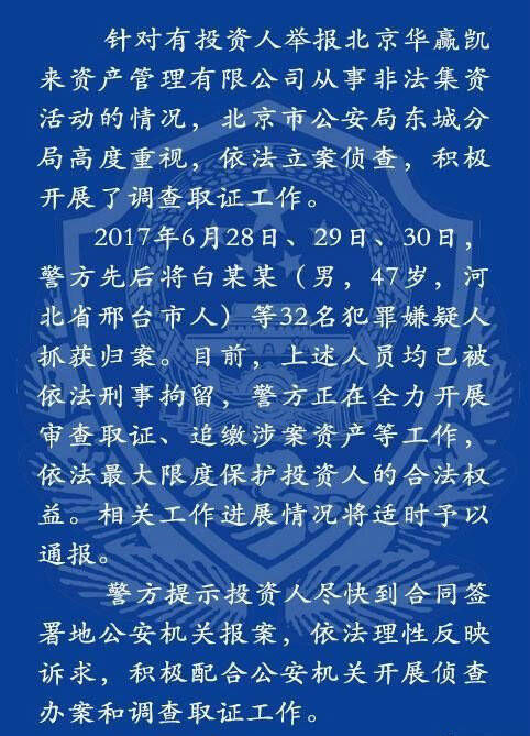 日前,相关部门对著名的华赢凯来案作出二审宣判:公司实际控制人白丹青因非法集资48亿,被判无期徒刑,其余33人分别被判三到十年不等。