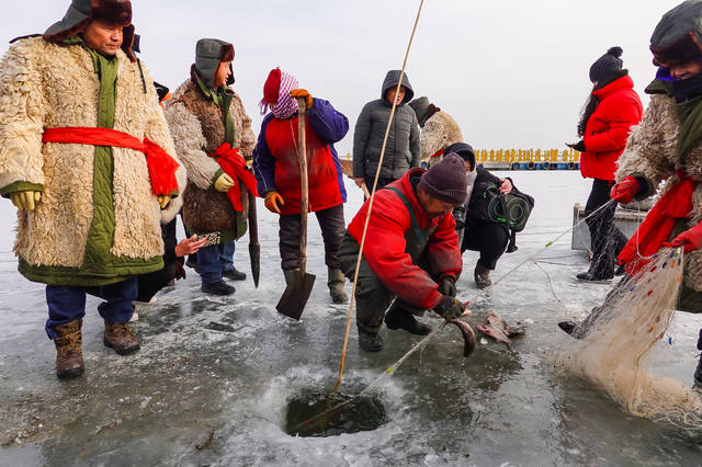 前两天我在博湖县旅行,正好赶上了一波冬捕,当地渔民在厚厚的冰面上打一个洞,利用传统的渔猎方式,现场打捞上来几十条鱼,让我是大饱口福。