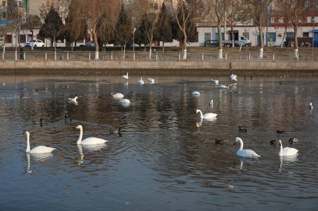 12月24日,我旅行途径新疆库尔勒,在美丽的杜鹃河畔看到令人吃惊的一幕。上百只洁白的天鹅在河中畅游、悠闲的觅食,过往的市民纷纷驻足观看,更是有摄影爱好者拿出专业设备不停的拍照。