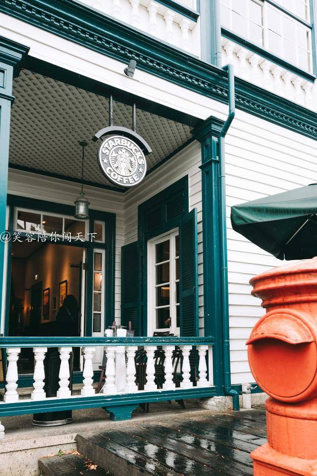 它本身是在一个百年洋房里面改装的,并没有像普通的连锁店一样做成标准式的星巴克。从外表上看,这家星巴克并不会在周围建筑中非常的格格不入,鹤立鸡群,它的风格与整条街的整体设计风格是相符的,但它也不会埋没在所有建筑里,依旧还是非常的瞩目。它看起来有点儿像一个邮局,白绿相间。门口的小房子看起来就像是个小报亭或者说是大邮筒,这也是网红们最喜欢来拍照打卡的地方。