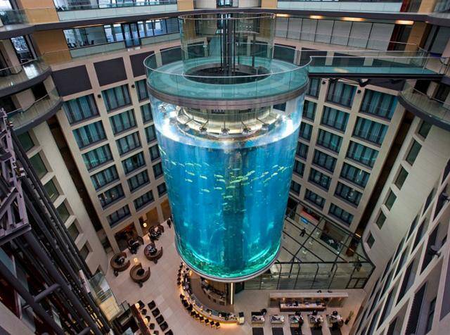这个鱼缸位于德国首都的一家名为柏林迪森布鲁酒店之中,要知道,这家酒店可是当地著名的五星级酒店,环境清幽舒适,地理位置更是较为优越,无论去哪里,交通都比较便捷,也受到了广大游客的普遍好评。而这家酒店之所以闻名世界,并不是因为这家酒店精致豪华的装修,也并非其清幽舒适的环境,而是因为这家酒店斥巨资所打造的巨大鱼缸!
