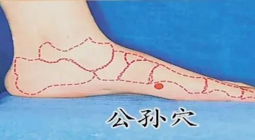 公孙在足内侧缘,第1跖骨基底的前下方。
