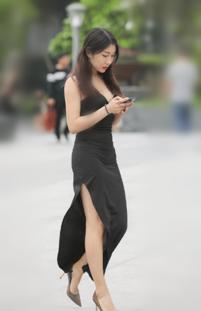那种刚满二十岁的小女生们可能不知道什么叫做韵味,但是二十五六岁以后的小姐姐们,应该就知道什么叫韵味了,所谓的韵味当然就是女人味儿了,男人看见有女人味儿的女生,根本就是走不动道了好嘛,就像图中的这位小美女一样,她穿的就是一身黑色的长裙,这款长裙虽然是偏休闲一些的,但是小姐姐的腰部还是有紧身的束腰的,非常的显她的好身材呢,加上开叉的设计非常的优雅呢,像这样的女生的话韵味十足,真的也太好看了吧。