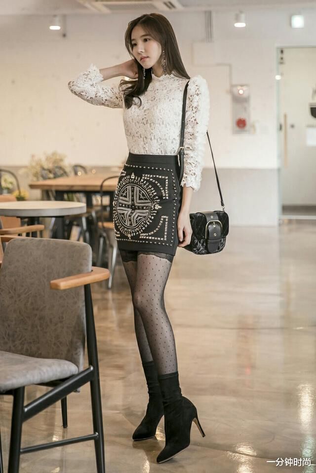 像这身白色的镂空碎花衫搭配了一件非常个性的职业套裙风格,给人的感觉就是非常独特的气质。本身黑白搭配的着装应该是一种比较正式的风格,但是放在这身着装搭配上却很明显的没有想象中的那种正式感,反而还能呈现出一种比较花哨的个性时尚风格呢。