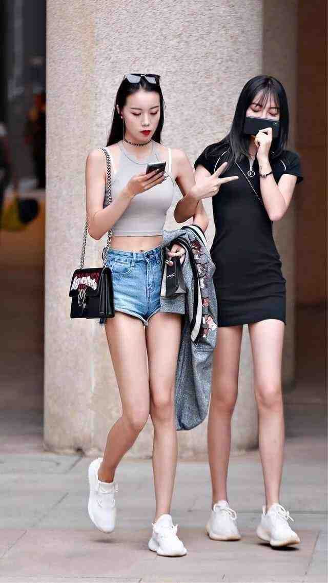 左边小姐姐牛仔热裤搭配针织背心,充满青春活力;右边小姐姐则穿了黑色的连衣裙,搭配同款的休闲鞋,非常时尚。从照片中看两位小姐姐应该是好闺蜜或者好姐妹吧,不然不会挽着手一起逛街的,像这样懂得打扮的小姐姐走到哪都是一道靓丽的风景,浑身上下都充满着时尚的魅力。