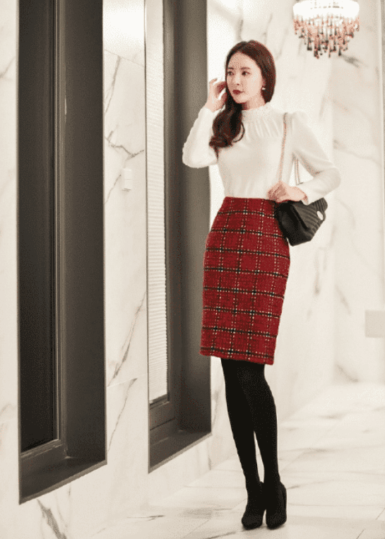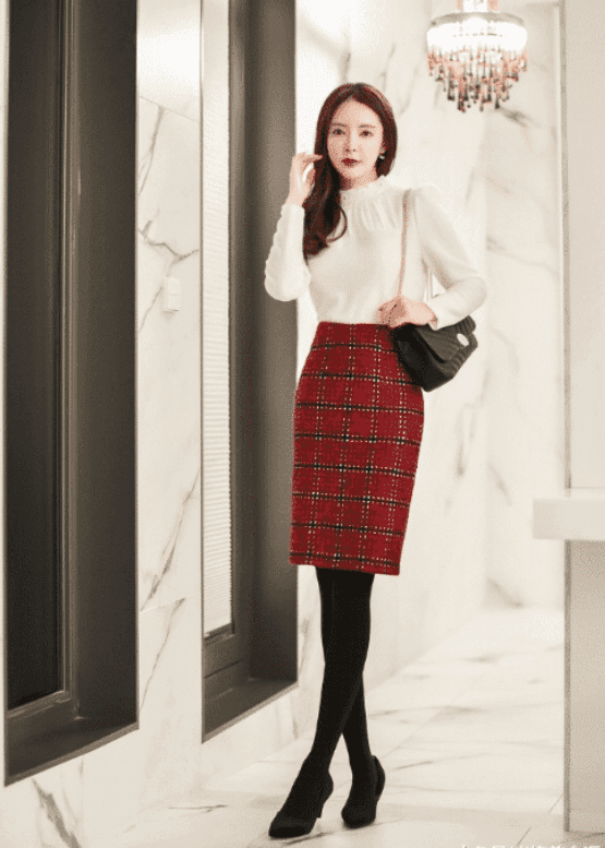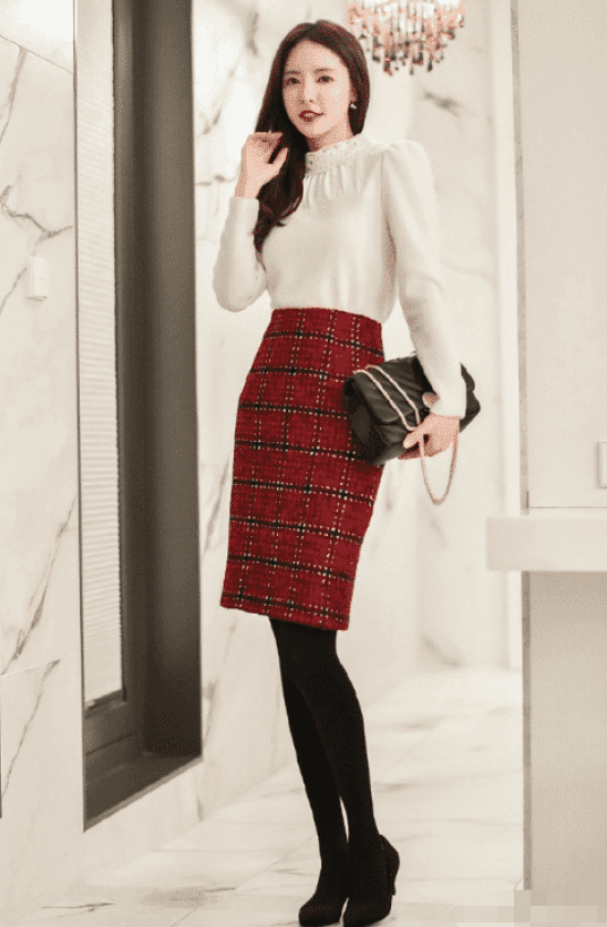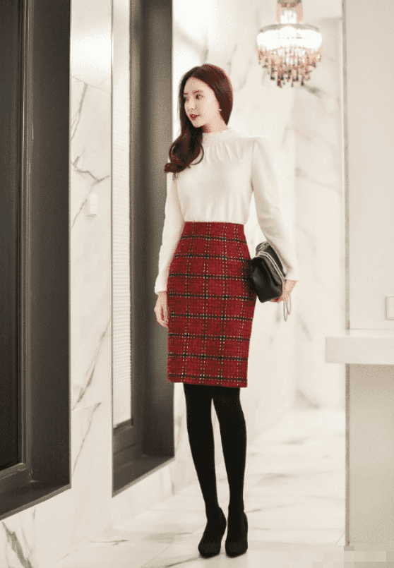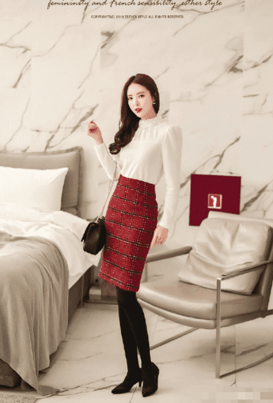画面中的美女穿着一套标准的秋装,上身是一件白色的雪纺衫,下身穿一件包臀格子裙,加上一条黑色丝袜,让美女穿出了属于这个秋日里那一丝寒凉的气味。美女雪纺衫的设计让美女穿出了大家闺秀的典雅,紧身包臀裙的设计,让美女穿出了属于自己的好身材,外加自己裙摆下那黑丝包裹着的小腿,想必这双腿也是一条修长笔直的大长腿吧。
