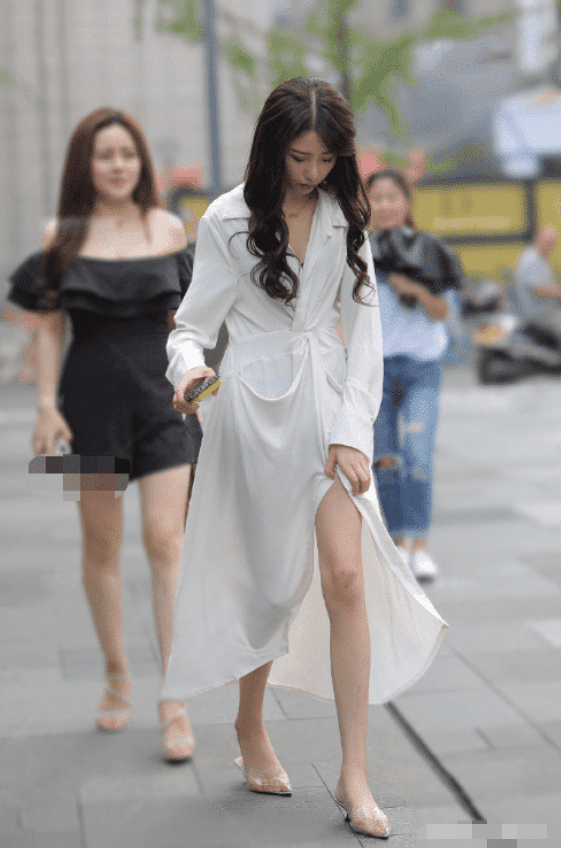 随着流行元素和大胆的穿搭越来越多,我们总是可以在街上见到各式各样的美女,穿着许多奇形怪状的衣服,让自己的身材包裹在其中释放自己属于那份独有的美丽。就像画面中这位美女一样,穿着睡裙逛街,你的闺蜜的抹胸装都被比了下去。