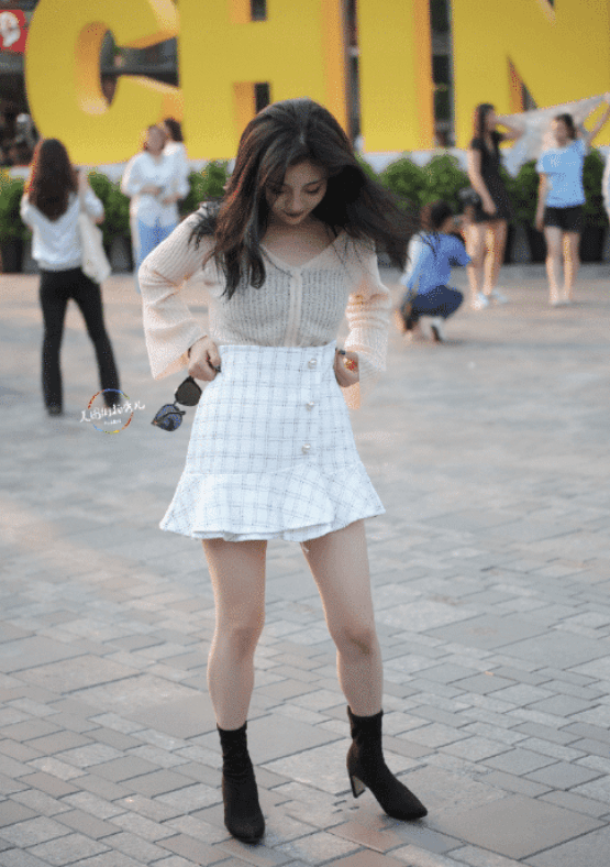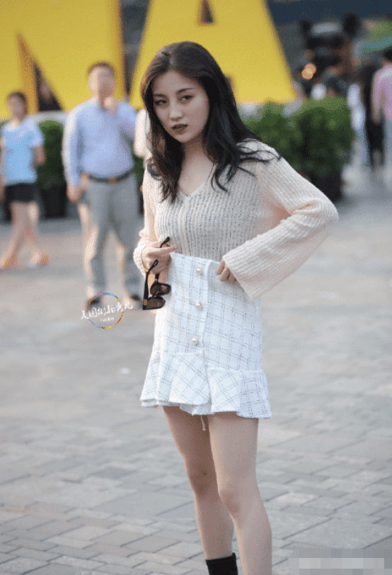 这位女生的白色短裙好像买大了,走在路上在不停地进行调节,看着都不是很美观,不过这条裙子还是很好看的。作为一条小香风格的毛呢短裙,非常适合冬季穿着。小香风今年很流行,主打优雅时尚和休闲。