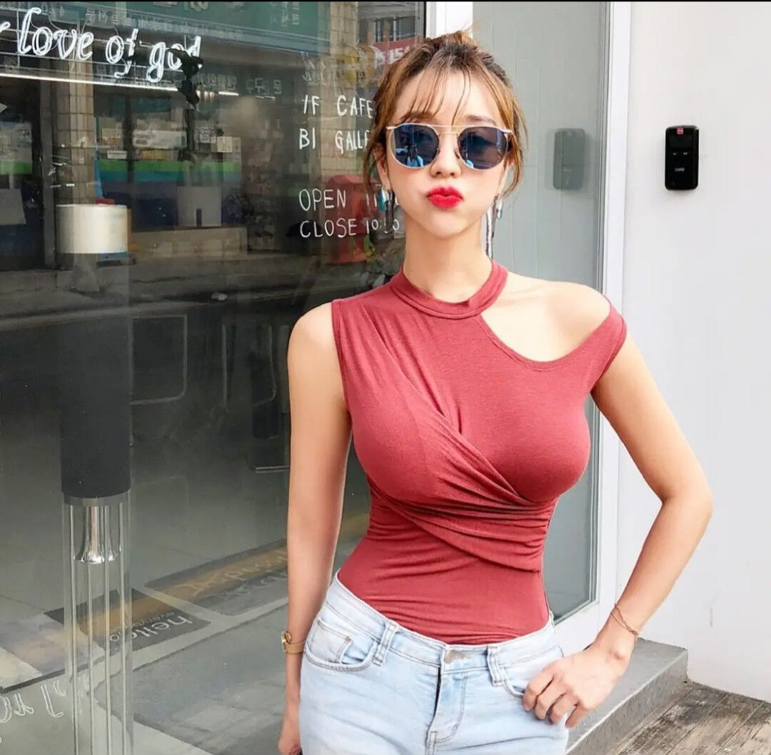 如图中小姐姐一样穿一件肩部镂空T恤,下身可搭配牛仔裤或者竖条纹高腰裤,再配上一双小高跟就可以达到效果。如果你是微胖的话,这样穿还能显瘦。