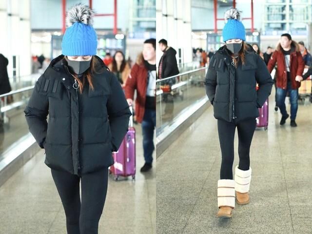 再来看看赵薇正确的示范,衍缝线足够宽的羽绒服,表面平整看起来质感好很多,搭配修身的裤子,即使羽绒服更加膨胀,看起来也丝毫不显胖。想要减龄的话,还可以从配饰上入手,赵薇这一顶蓝色毛线帽吸睛抢镜,让全黑的搭配瞬间萌萌哒,可爱又不做作,但是底下的毛绒雪地靴,如果没有足够的身高,就不要轻易尝试了。