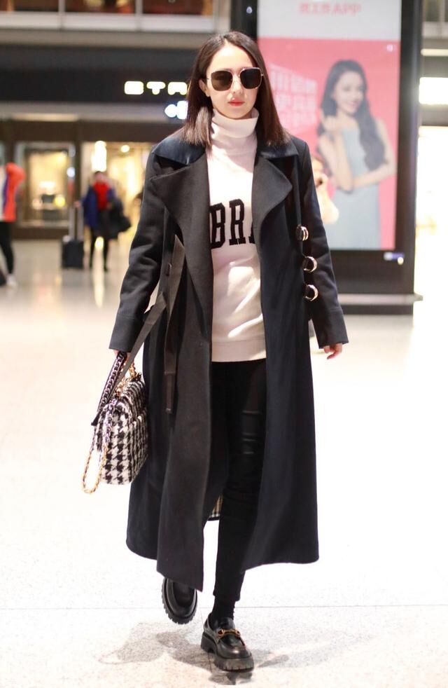 打底裤与长款外套的搭配中,紧身打底裤能起到显瘦与减轻长外套臃肿感的作用,但是在挑选长款外套的时候,还是根据身材选择适合自己的款式,才能更显高。长款大衣体量较大,身材娇小的妹子,要尽量挑选H型,也就是直筒大衣来穿,才能在视觉上更显高,身材高挑匀称的姑娘可以用X型或者A型,其中X型的收腰设计显高显瘦的功能性更强,董璇这款便是X型大衣。