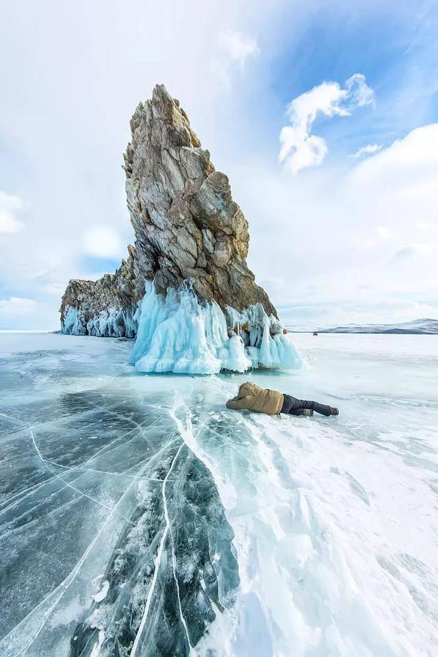 你知道的贝加尔湖,春天是绿色的,夏天是清澈的,秋天是五彩的...但是到了冬天这里就变成了一片白色的冰原。