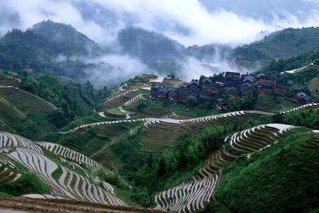 广西, 是一个宝藏地, 一片深受上天宠爱的美景之地, 这里不仅有山水甲天下的桂林, 被誉为“天下第一滩”的北海银滩, 中国十大最美丽海岛之一的涠洲岛, 华南第一峰猫儿山, 震撼心灵的美景这里全都不缺, 古朴自然的宁静这里也有。 龙胜县龙胜梯田