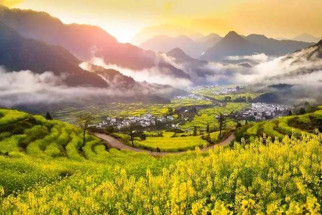 春天,一座小城,花的海洋 淡淡炊烟笼罩的马头墙 山间梯田抽象的线条 暮色中骑在牛背上的村童 让人陡然间心静如水,恍若隔世 也许你知道这个地方 但其实并不太了解这个地方 它不仅有油菜花 还有温婉的徽派建筑