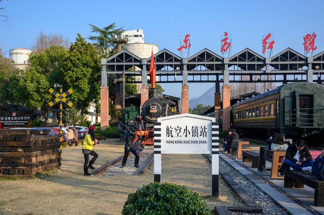 东方红主题酒店,以上世纪50年代的金千铁路旧址为切入点,一辆辆绿皮火车在蒸汽机头的牵引下开到了这里,停靠在铁轨之上,也就是现在的“航空小镇站”,打造了浙江唯一的一家以绿皮火车为主题的酒店,走在火车轨道之上,整个人似乎又回到了那个年代,那么车、马、邮件都慢的年代。