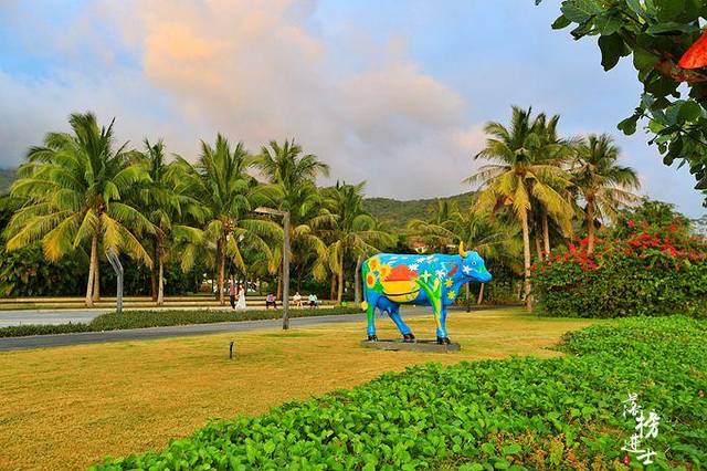 亚龙湾素有“天下第一湾”之称,海面视野开阔,水清岸绿,空气清新。海边遍布椰树,红色的花和绿色的树和彩色的雕塑触目可及,走在其中,恍若一脚踏入一幅浓墨重彩的水墨画中。