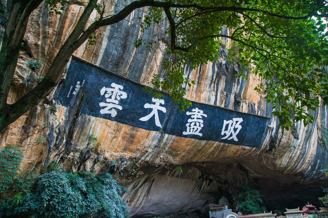 感驮岩位于中越边境上的那坡县城北的后龙山下,这里不仅是著名的文化遗址,而且还是古镇安官署重地。这里依山临水,幽雅开阔,历史上不少文人墨客于石壁上咏诗题词,以舒感怀,如“驮岩滴翠”“吸尽云天”“吞吐山川”等大量石刻及记载史料,被誉为镇阳八景之一。