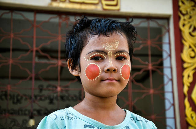 缅甸的女人,无论是年长者还是年轻貌美的小姑娘,甚至一些年轻男子,都在脸颊涂上一片“黄粉”,这似乎已经成了缅甸标志性的街头景观。