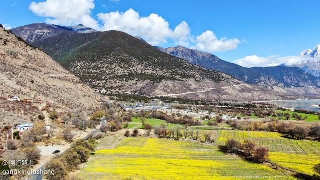 这是在靠近吞白村的公路边,如今的公路修复的非常好,穿过公路两边,就能过看到正在盛开的油菜花,已经是十月份,这里依然油菜花盛开,你会想象这是在西藏吗?其实很多人都不相信,但是独特的地理的地理位置,让这里有了此时此刻的与众不同。