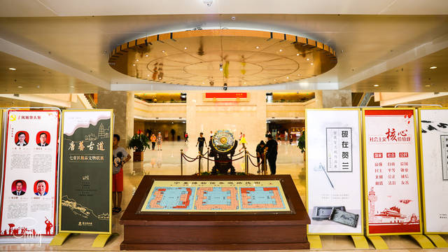 首先,宁夏博物馆的整个建筑外墙装饰运用了迦陵频伽、力士支座等建筑构件形象,馆内藻井式吊顶采用西夏瓷剔刻花纹装饰。馆藏的文物和艺术展品种类繁多,是了解宁夏的一部史书。