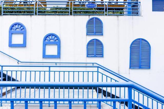 就算在冬日里穿上大衣和蓝白小镇一样很搭,如果是夏日那一定要穿上漂亮的连衣裙,更是怎么拍都好看,最让人动心的就是那涂满蓝色的精美窗户和护栏。有时间的话,在这里喝杯咖啡也是一种别样的体验。