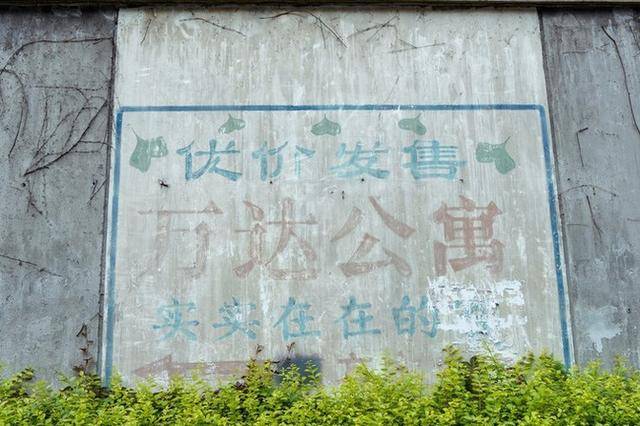 当初的发售公寓的招牌还保留着,依旧能看清楚上面的字迹。这么多年过去了,它似乎依旧在坚持着。