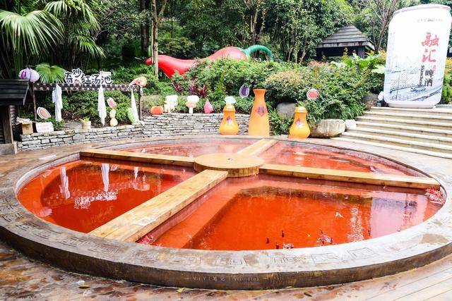 打卡了融汇温泉,这就是传说中可以泡红汤的温泉,也只有在重庆才能看到了。