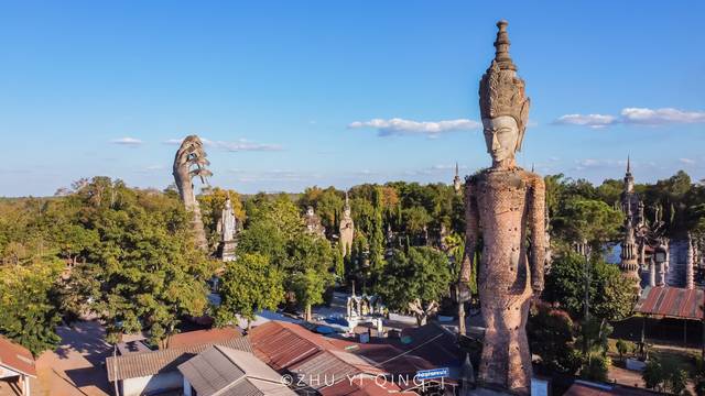 在与老挝一河之隔的泰国廊开府,有一座名为撒拉教窟的佛像雕塑景区,它更像是一座雕塑公园,只是里面都是各种牛鬼神蛇般的佛像雕塑作品。这座公园里的佛像颠覆了很多人对于泰国寺庙里佛像固有的印象,尤其是刚进园的那尊高耸入云的七头蛇神像,有好几层楼那么高,让人一眼看不到头。