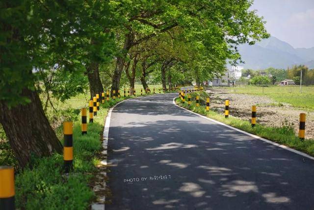 一条弯曲的小路通向山脚下的村庄,树头花落,绿草如茵,雨天不泥泞,晴天不耀眼。间或几个村民说笑着行走,开着残摩,跨着摩托,骑着大二八,吱呀吱呀地经过……