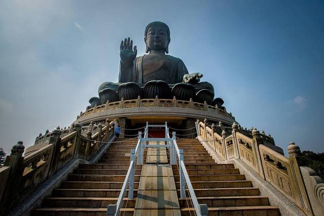 天坛大佛位于昂坪,是一座位于香港大屿山宝莲寺前的木鱼峰上的一个佛像。这个佛像是由202块铜片组成的,并且坐在二百六十八级的石阶上,连基座跟莲花座加起来总高是33.999米,非常高大、神圣,可以说是世界上最大的户外青铜座佛了。