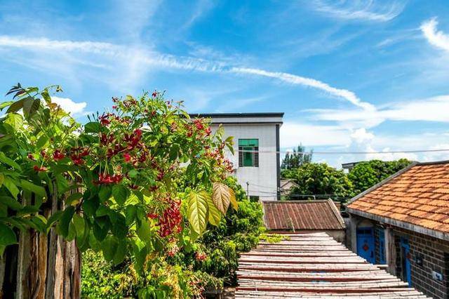 “天空中飘眇荡音符,三角梅开缀满途。”在红情绿意的夏天,南极村的三角梅开的正艳,像是感觉到了来人,竟竞相从院子里伸了出来,沿路开放着,似是在招手欢迎远道而来的客人,无论远看近看,红花绿叶,把这个美丽的村子装点的更有生机。南极村位于广西省徐闻县角尾乡,因其地理形状就像一只伸向大海的牛角,并且处在我国的最南端,因此得名。
