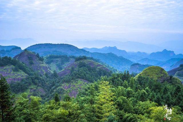 除了充满传奇色彩的千年封禁,山上还有一个标志性景观——白花岩。白花岩是广丰著名的丹霞地貌"三岩"景观之一,号称“赣东南第一峰”,岩高百余米,登及此处,只觉视野开阔,一目三省,大片的石林深幽峡谷尽收眼底。