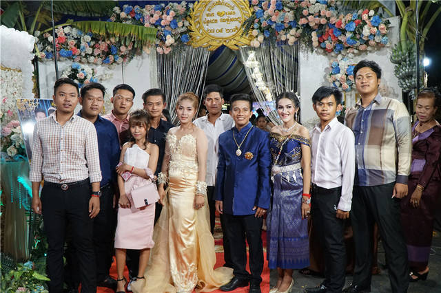 婚礼图符。柬埔寨使用美元,流行英语,而中华传统文化的影响却早于西方,渗透进这个民族的日常生活之中。这户人家的婚宴绝非西式,有中式婚礼的喜庆和闹腾。