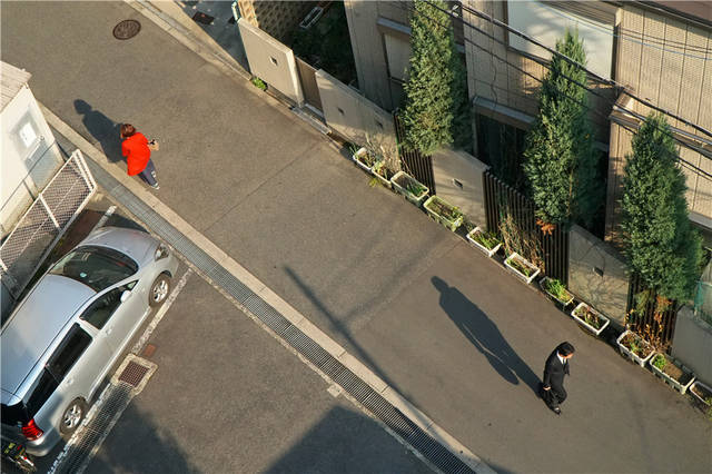 大阪城市建筑密集,但似乎缺少高度。我站在一座六层的开放式公寓走廊,俯瞰之下,密密匝匝的一户建,二三层,都不高。说实话,现在国内的一个小县城,六楼的高度也难拍到这般平淡的天际线。