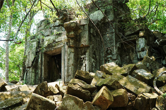 吴哥地处热带,在被废弃的四百多年里,森林恣肆扩张,没有人迹。当吴哥重新发现,已经面目全非了。从现场看,崩密列完全坍塌,时光把它降维了,连当年高耸的影子都没留下,肢解得那么彻底!