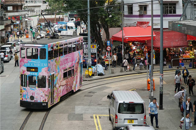 随着城市文明的进程,有些场景在内地都已很少看到,比如露天集市——这种虽便利但嘈杂、难以卫生还影响交通的境况,在香港依然可以见到。如果你感兴趣,坐上东向的叮叮车,到北角站下来,那里有条春秧街,几乎就是一个露天市场。