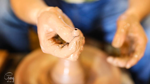 其中最为引人注目的是潮州工夫茶,随着潮州人遍布世界各地,誉播海内外。这次,潮州街头漫步,路上遇到了一个手工茶壶制作大师正在制作手拉壶。
