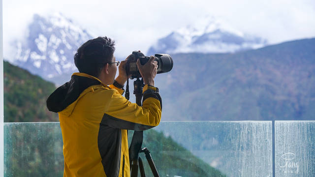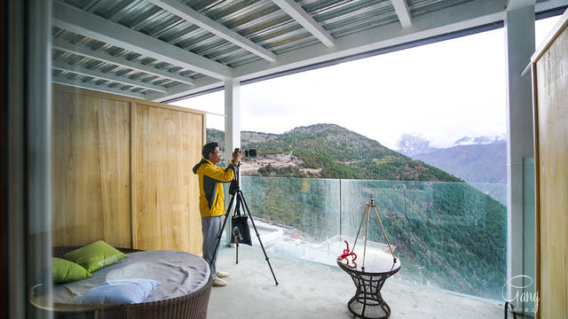 入住的民宿位于飞来寺所在的这个小镇上,因为很多人看日照金山的缘故,所以在镇上已经有大大小小无数个类似的客栈,位置都非常好,站在阳台上,侧面也能够看到远处的卡瓦博格。