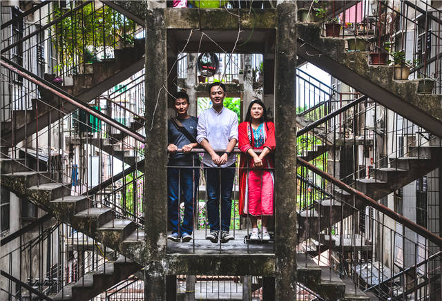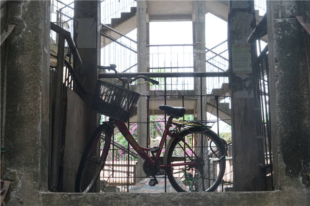 南宁鸳鸯楼位于唐山路28号,建于1987年,整个鸳鸯楼一共有4栋楼168户人家,我和小伙伴是骑自行车来的,走进楼道,可以感受到浓郁的生活气息,老式的自行车安静的停放在楼道内,和纵横交错的楼梯在一起,满满的八十年代怀旧感。