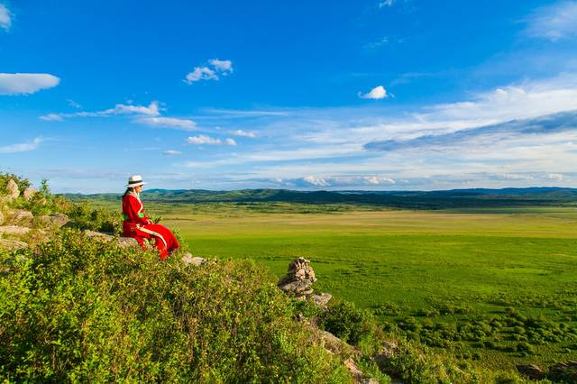 锡林郭勒大草原位于内蒙古境内,首都北京的正上方。春天一到,青草发芽。一望无际的大草原,绿油油的。散布在草原上的羊群、马群,一片又一片,灵动活跃。这里是我国最大的天然草场,有世代生活的牧民。他们住在大大的蒙古包内,载歌载舞。广阔的草原是他们的后花园,蓝天白云是他们的天然背景。