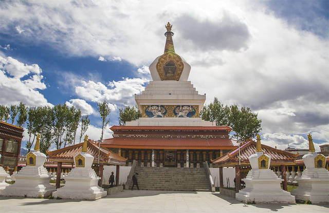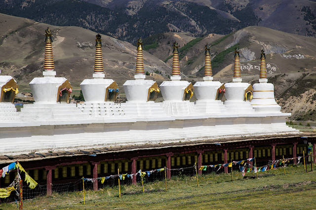 四川理塘白塔建在一个小公园内,是理塘县的著名人文景点。白塔高33米,周围环绕119个小白塔,代表119个小村庄,形成了壮观的白色塔林。好像众星捧月一样,围绕着心中至高无上的佛祖。据说白塔是藏王松赞干布和文成公主共同建造,既体现了汉藏民族大融合,也反应了当时人们对佛祖的敬仰。