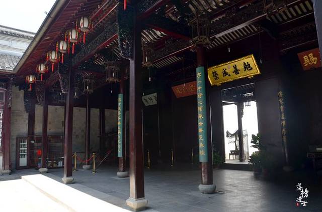 轿厅内高大的梁柱全部由珍贵的银杏木建造,正门横匾上“勉善成荣”四个大字方正遒劲,是同治皇帝御笔所题。其中“勉”和“善”各缺一笔,寓含着同治皇帝对胡雪岩的勉励:勤勉是永无止境的,善行也是永远无法圆满的,要时刻勤勉不休,为善不已。